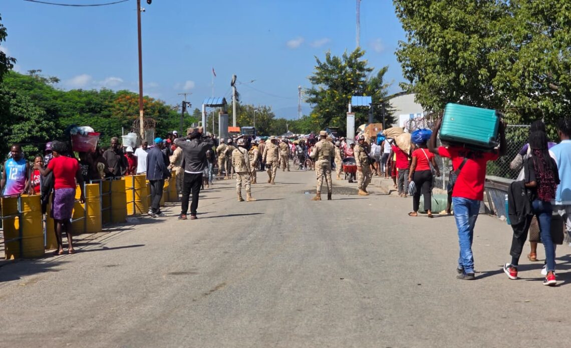 Debido al paro por parte de la Asociación de Motores de tres gomas en la ciudad de Juana Méndez, el flujo de haitianos este día a bajado gradualmente, mientras que algunos de ellos optan por transportar a pie la mercancía que compran en el mercado, bajo la estricta seguridad implementadas por las autoridades dominicanas en el pazo fronterizo.
