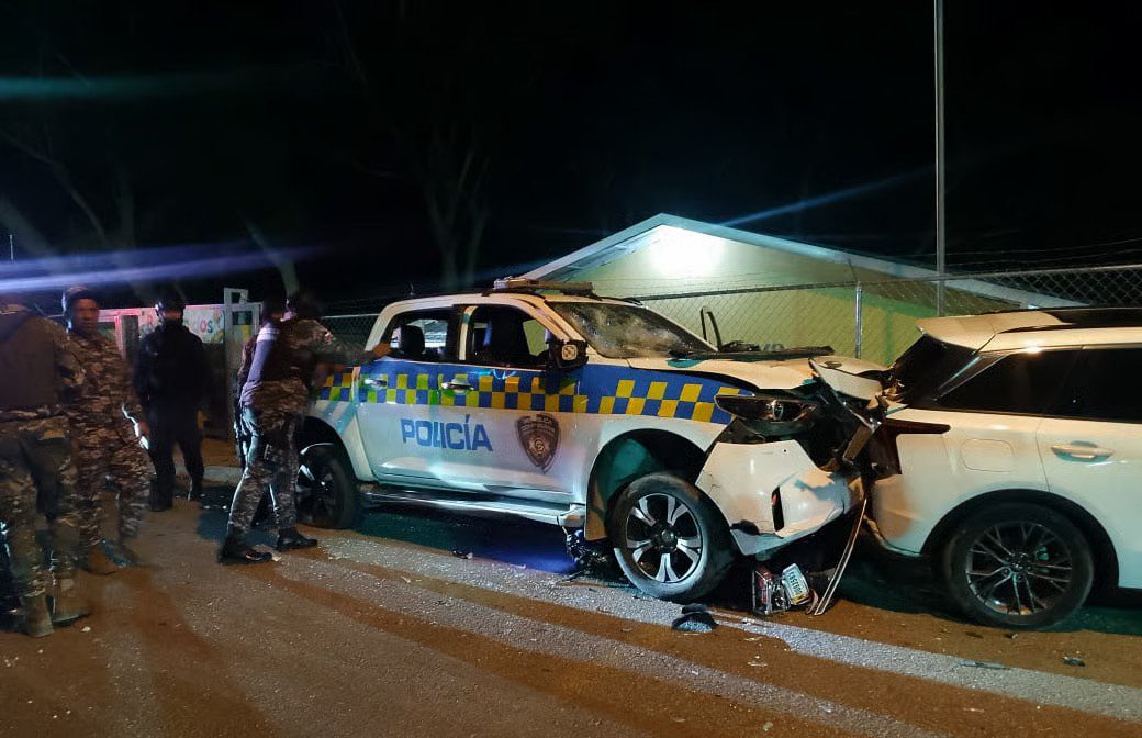 Según reportes preliminares, el accidente se produjo cuando la unidad patrullera, que realizaba labores de prevención, colisionó con una yipeta y una motocicleta que se encontraban estacionadas en el lugar.