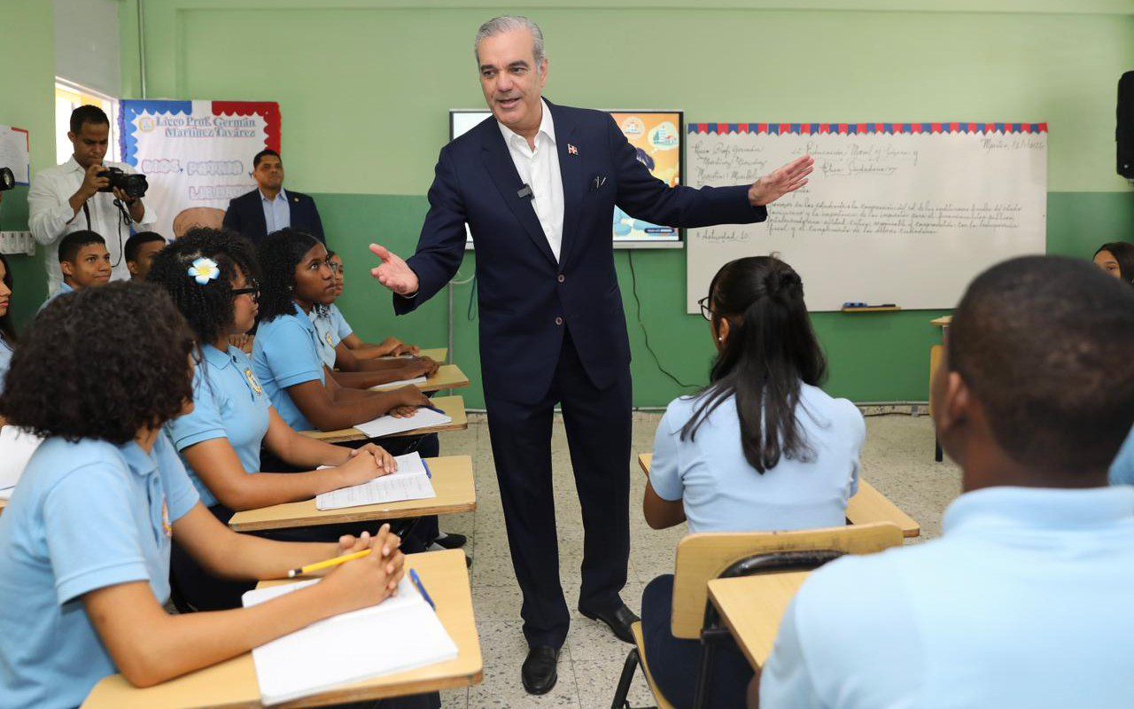Santo Domingo.- El presidente Luis Abinader fungió este martes como docente al impartir una clase de Moral, Cívica y Ética Ciudadana a estudiantes de quinto grado del liceo Germán Martínez y indicó que «esta materia debe colocarse adelante en el sistema educativo porque permite formar mejores compañeros, mejores parejas, mejores ciudadanos y mejores dominicanos».