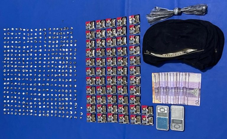 Señala que, como resultado del operativo fueron detenidas dos personas, a quienes se les ocupó un total de 789.3 gramos de un polvo blanco presumiblemente cocaína, 787.6 gramos de presunta marihuana, 1.2 gramos de un material rocoso presumiblemente crack, además de un celular.