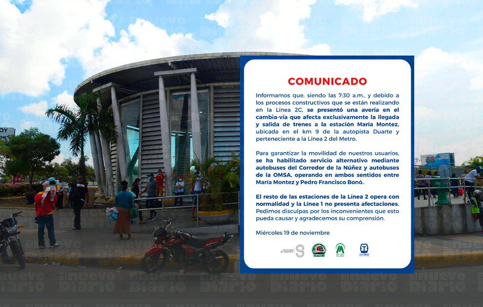 De acuerdo con un comunicado, para garantizar la movilidad de los usuarios, la institución habilitó autobuses del Corredor de la Núñez y de la Operadora Metropolitana de Servicios de Autobuses (OMSA) , que servirán como servicio alternativo, operando en ambos sentidos entre María Montez y Pedro Francisco Bonó.