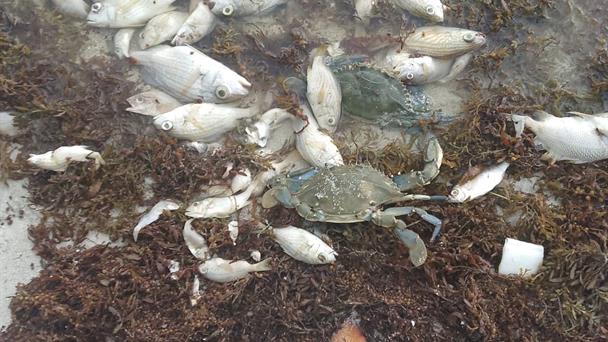 “La playa está llena de peces muertos de todos los tamaños, no son solo los que están en la orilla, hemos caminado hacia adentro y todo eso blanco que se ve son peces”, relató Manuel Castro, prestador de servicios acuáticos en la zona.