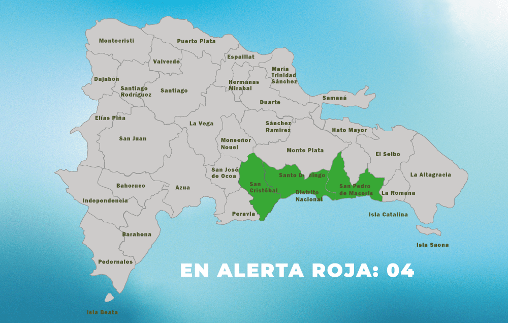 Las provincias bajo alerta verde son San Cristóbal, San Pedro de Macorís, Santo Domingo y el Distrito Nacional.