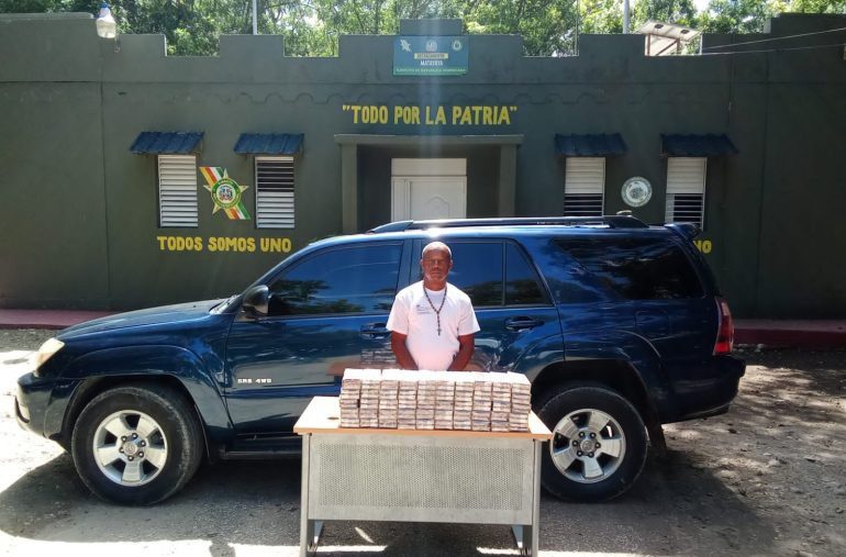 El detenido fue identificado como Enrique Fernando Jáquez Encarnación, quien al momento de la depuración figuraba como Cabo (r) de la Policía Nacional y resultó detenido mientras se desplazaba a bordo de una jeepeta marca Toyota, modelo 4Runner, color azul, con placa haitiana No. BB22471.