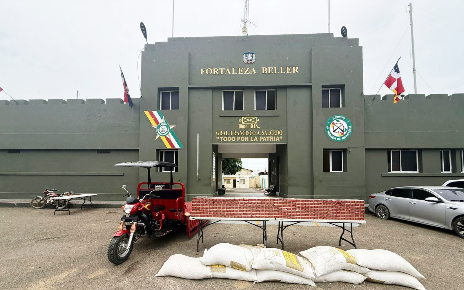 Dajabón.- Un contrabando de 98,600 unidades de cigarrillos fue incautado por miembros del Ejército de la República Dominicana, destacados en el Puesto de Chequeo Militar El Vico, en una motocicleta de tres ruedas interceptada en Dajabón.