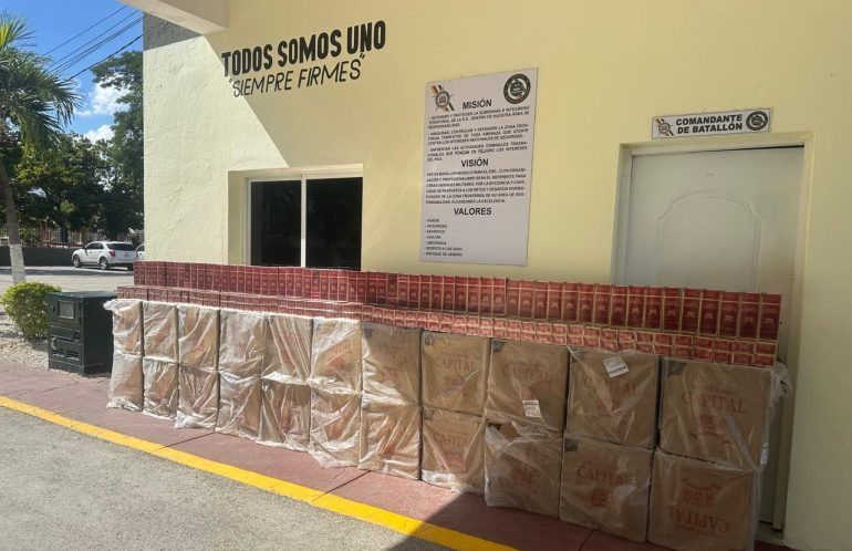 Al ser inspeccionar los sacos se comprobó que contenían 26 cajas de cigarrillos marca Capital, con 50 paquetes cada una, para un total de 260,000 unidades.