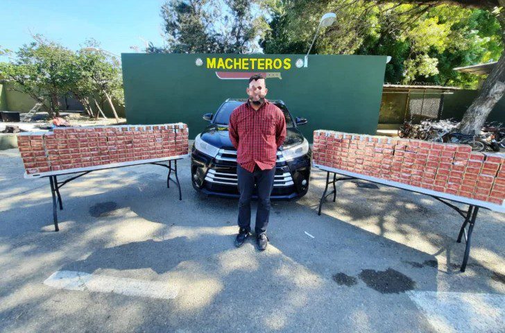 Durante el operativo realizado en el Parador Félix, frente al cementerio municipal de Mao, se procedió a la detención de una yipeta Toyota Highlander negra, conducida por L.M. R.C., ciudadano dominicano, quien fue arrestado como resultado de la intervención.
