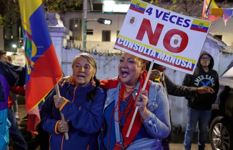 De su lado, la Confederación de Nacionalidades Indígenas de Ecuador (Conaie), la organización social más grande del país, que lideraba la campaña en rechazo a las propuestas de Noboa, consideró que el ‘No’ unió a Ecuador como país, que ha dicho “basta de abusos, basta de amenazas a nuestros derechos”.
