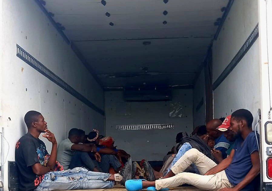 Al notar la presencia de las autoridades, ambos conductores emprendieron la huida, abandonando los vehículos. Al inspeccionar el camión, se detectó que en su interior eran transportados 24 nacionales haitianos con estatus migratorio irregular, incluyendo 21 hombres y 3 mujeres.