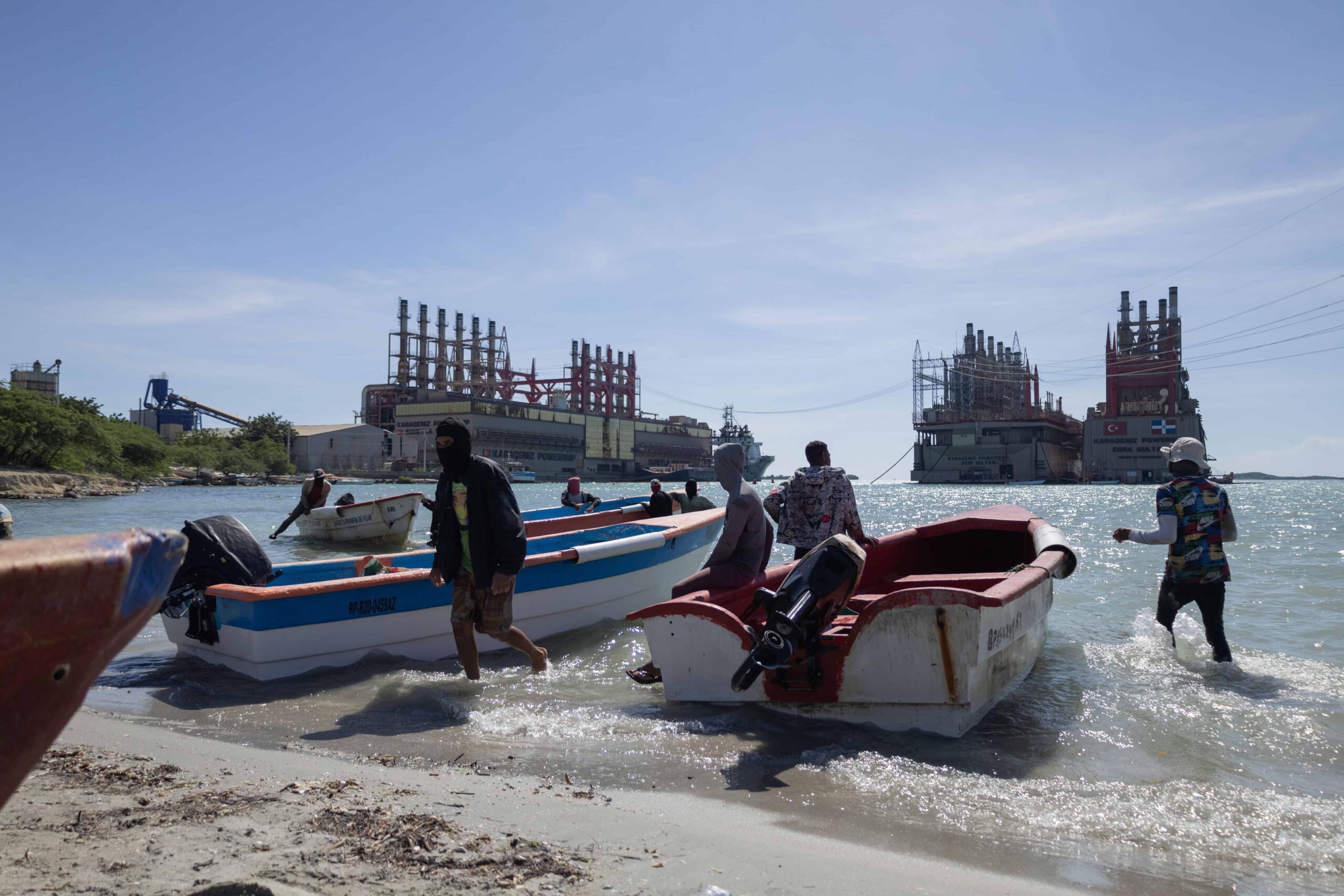 Azua.- En Los Negros, provincia Azua, una comunidad que por décadas ha vivido del mar y el bullicio de la gente, hoy domina un ambiente distinto: el ruido metálico que sale de las barcazas, y el humo que, como dicen ellos, “se mete hasta en las casas”.