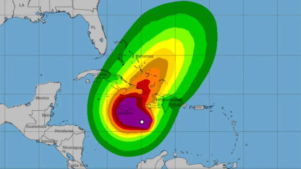 El organismo informó que, alrededor de las 5:00 de la mañana, el centro de Melissa fue localizado aproximadamente a 385 kilómetros al suroeste de Puerto Príncipe (Haití) y a 270 kilómetros al sureste de Kingston (Jamaica).
