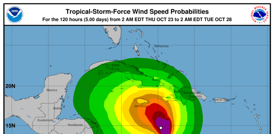 “Se espera que Melissa serpentee sobre el Mar Caribe central durante varios días y se pronostica que se convierta en huracán mayor a finales de este fin de semana y principios de la próxima semana”, indicó el Centro Nacional de Huracanes.