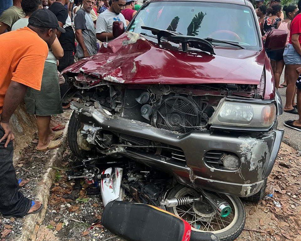 Según los informes preliminares el hecho ocurrió cuando una yipeta Mitsubishi Montero, color rojo vino, conducida por Adriano Williams Tavárez García, colisionó con una motocicleta marca Gato, color blanco, manejada por Moisés Morillo de León.