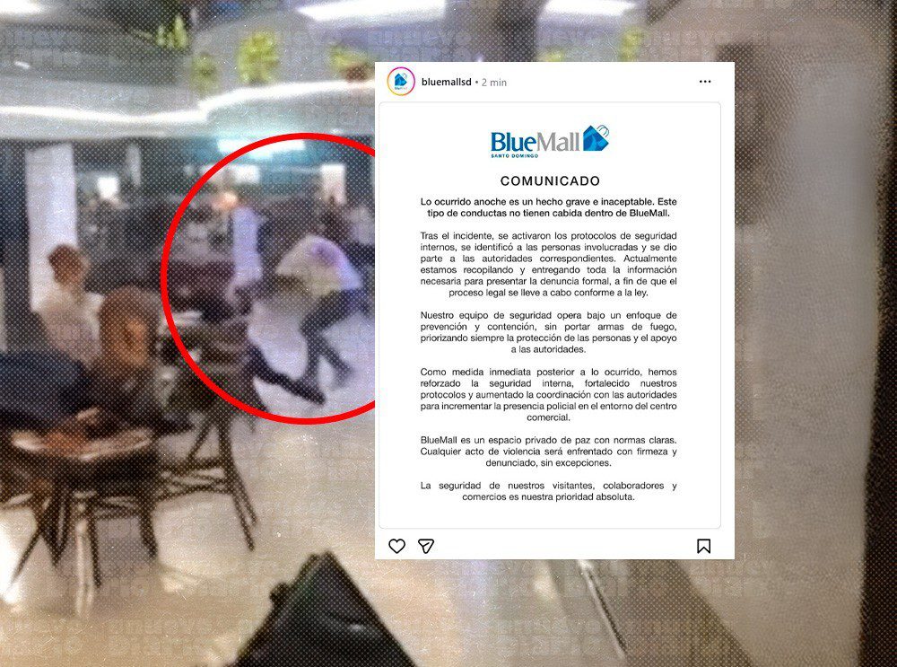 Santo Domingo.- La plaza comercial, BlueMall, calificó este lunes como inaceptable la acción de dos hombres que protagonizaron una pelea en un restaurante del establecimiento, en un hecho registrado la noche del domingo.