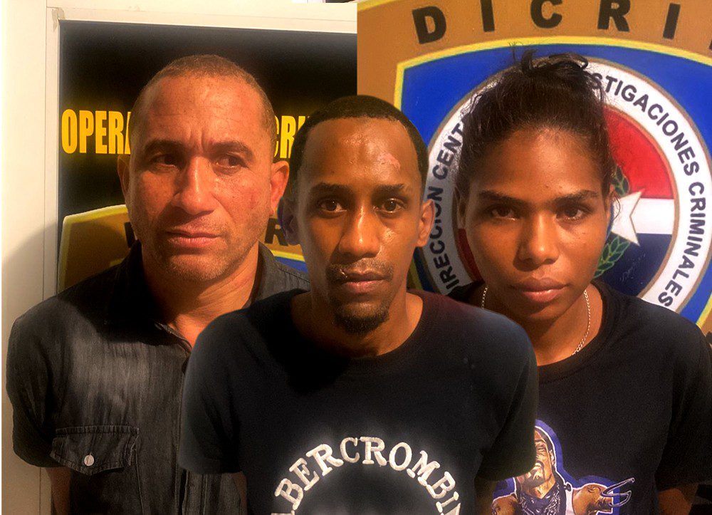 Los detenidos son Ardenson López Trinidad, de 32 años, residente en Licey al Medio; Yohansel Borquez Pérez (a) El Pinto, de 46 años; y Leydy Amador, de 27 años, ambos residentes en Sabana Perdida, Santo Domingo Norte.
