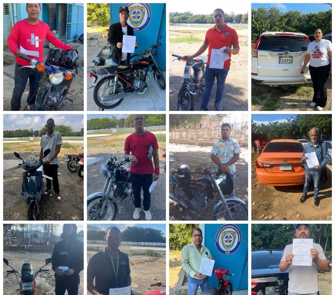 Asimismo, nueve motocicletas, dos carros y una jeepeta han sido entregados a sus propietarios, cumpliendo con el debido proceso legal, validación de documentos y certificación de propiedad, garantizando así la transparencia y la correcta restitución de los bienes recuperados.