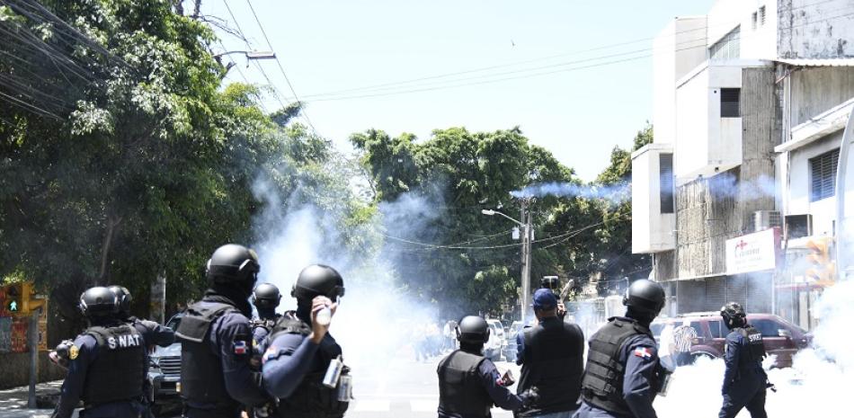 Santo Domingo.- Un grupo de policías pensionados que se manifestó este lunes en los alrededores del Ministerio de Hacienda para exigir el pago de pensiones y retroactivos atrasados fue dispersado con el uso de bombas lacrimógenas, según denunciaron los propios manifestantes.