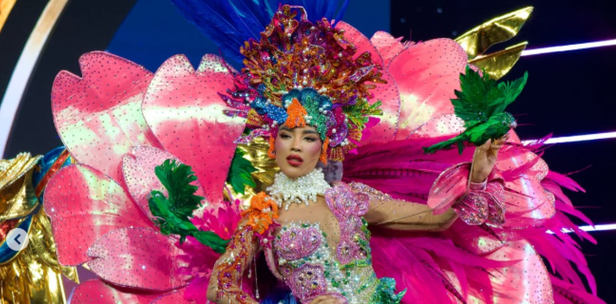 La joven dominicana llamó la atención con un traje típico inspirado en la Flor de Bayahibe, considerada una joya endémica que simboliza la identidad y resistencia de República Dominicana.