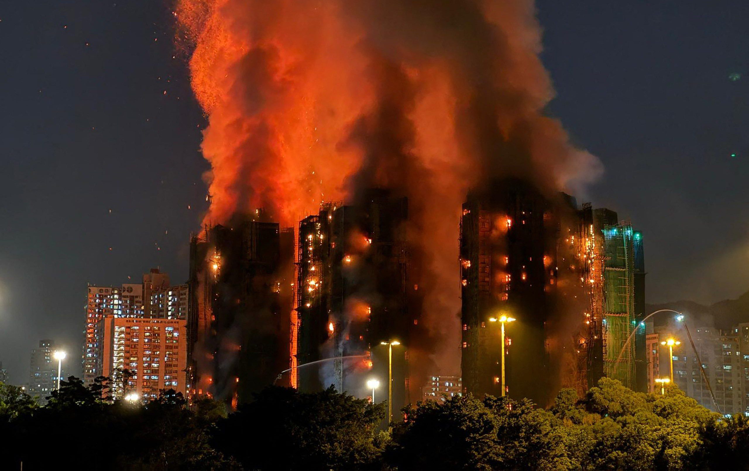 El jefe del Ejecutivo de Hong Kong también detalló que se han desplegado más de 140 camiones de bomberos y más de 800 bomberos y paramédicos para extinguir el incendio.