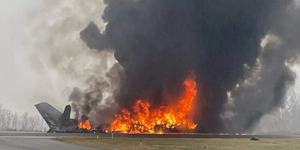 Una imagen difundida desde el aeropuerto muestra al avión envuelto en una gran bola de fuego tras el impacto.