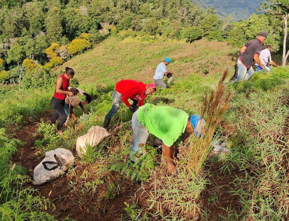 Durante la semana se plantaron 7,000 ejemplares de pino criollo, 2,000 de jina criolla y 1,000 de cedro blanco, especies que contribuyen al fortalecimiento de la cobertura boscosa y a la preservación de los recursos naturales en la zona.