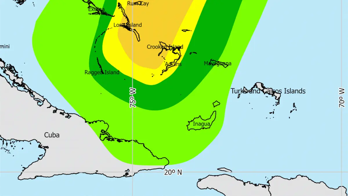 El organismo explicó que Melissa se encuentra a unos 345 kilómetros al noreste del centro de las Bahamas, moviéndose hacia el norte-noreste a unos 33 km/h, con vientos máximos sostenidos de 165 km/h y ráfagas superiores.
