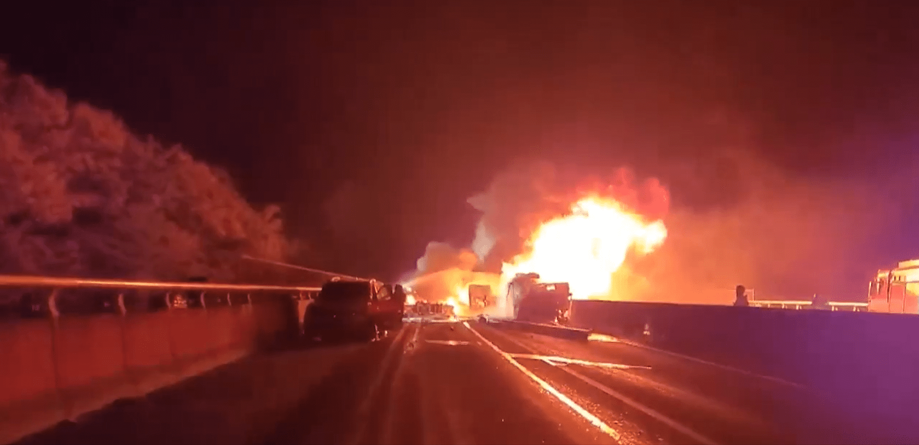Tras este primer impacto, un camión de 14 toneladas embistió al cisterna, lo que desencadenó nuevas colisiones con otros vehículos que venían detrás, incluidos turismos y un autobús, cuya veintena de pasajeros sobrevivió.