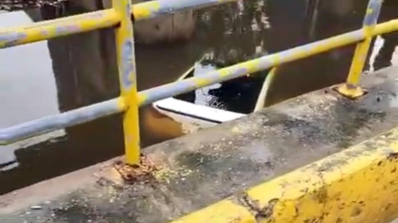 Según informaciones el conductor perdió el control estrellándose con la barandilla del puente y posterior cayó al agua, lo que las autoridades de la Digesett tuvieron que intervenir para sacar el vehículo con una grúa.